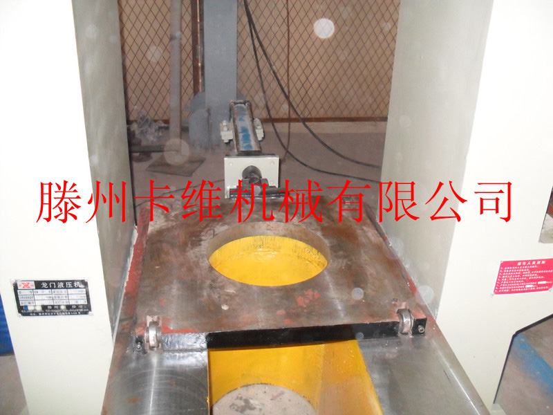 1、主機部分:該機器為龍門式液壓機,油缸裝在機頂?shù)锥藘?nèi)孔上,卡頭裝在油缸柱塞下端,與柱塞一起作用上下往復(fù)運動。